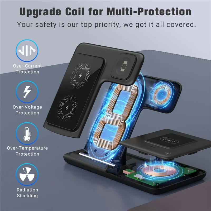 WITH DUAL CHARGING COIL DESIGN: The 2026 new 3 in 1 wireless charging station can provide a more stable charging experience without the intermittent charging or overheating caused by mismatch. Improved the charging speed, eliminate the hassle of finding the "Best Location".